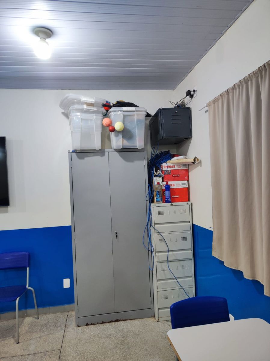 - 1 armário de metal com porta para armazenamento de materiais de uso pedagógico;