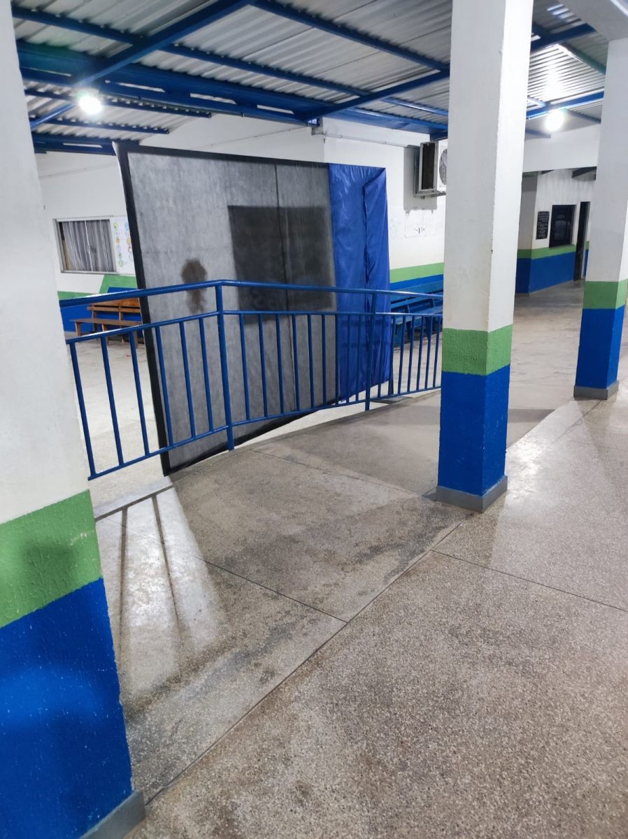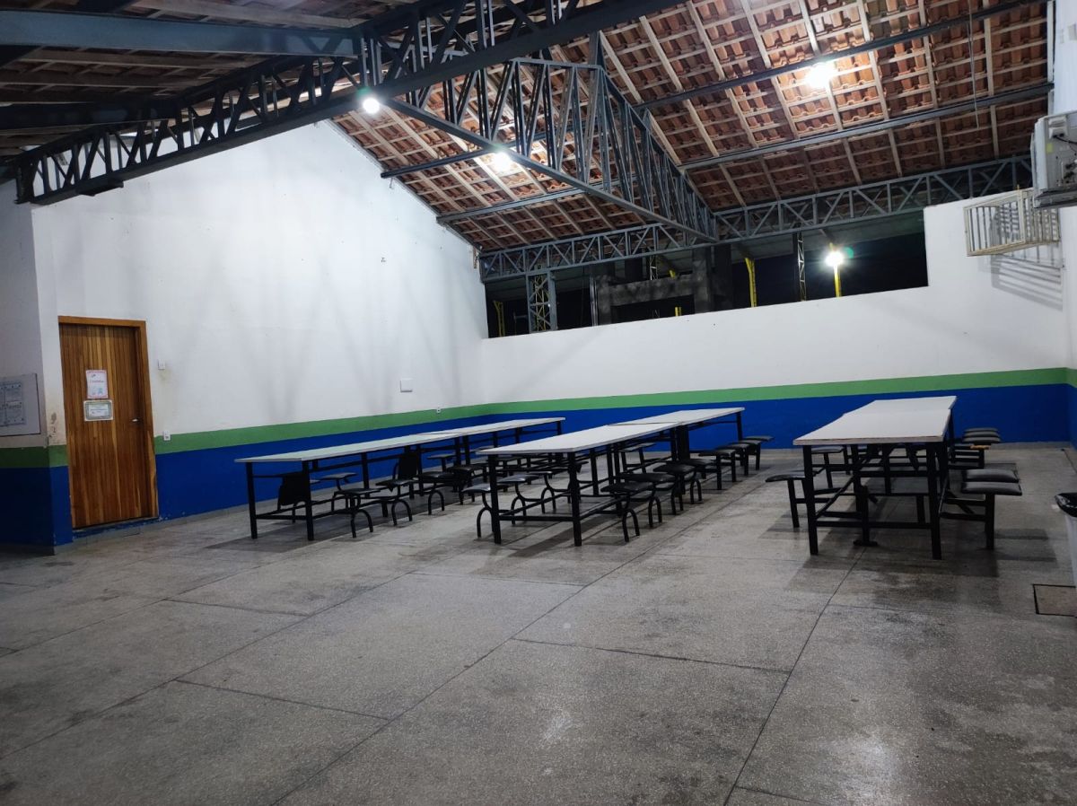 Na escola Getúlio Vargas os acadêmicos do curso de Licenciatura em Ciência da Natureza fazem uso da estrutura de uso comum da escola (pátio, corredores), banheiros e da área da cantina que fica junto ao pátio com um conjunto de 6 mesas de refeitório grandes com bancos acoplados.